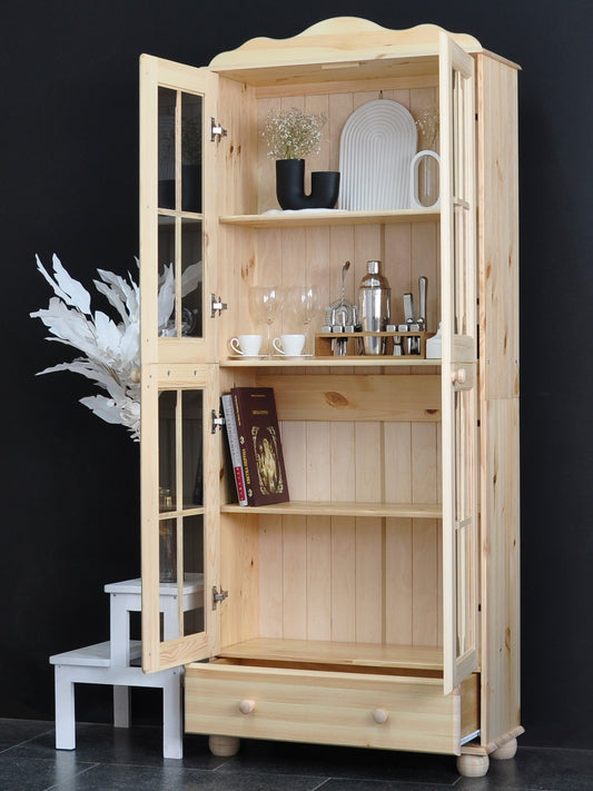 Schrank mit Vitrine Britta zweitürig ohne Veredelung