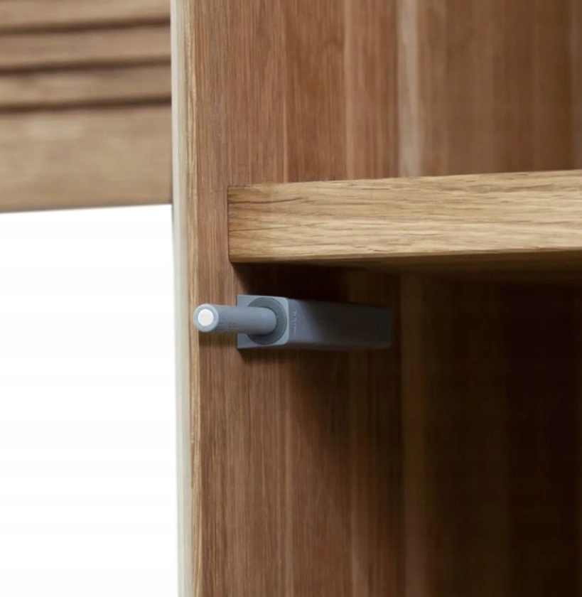 Drzwi z zamykaną klamką łatwo otwierają się w lewo dzięki wyłącznikowi znanego producenta BLUM, który jest płynny i cichy ruch drzwi podczas otwierania i zamykania.