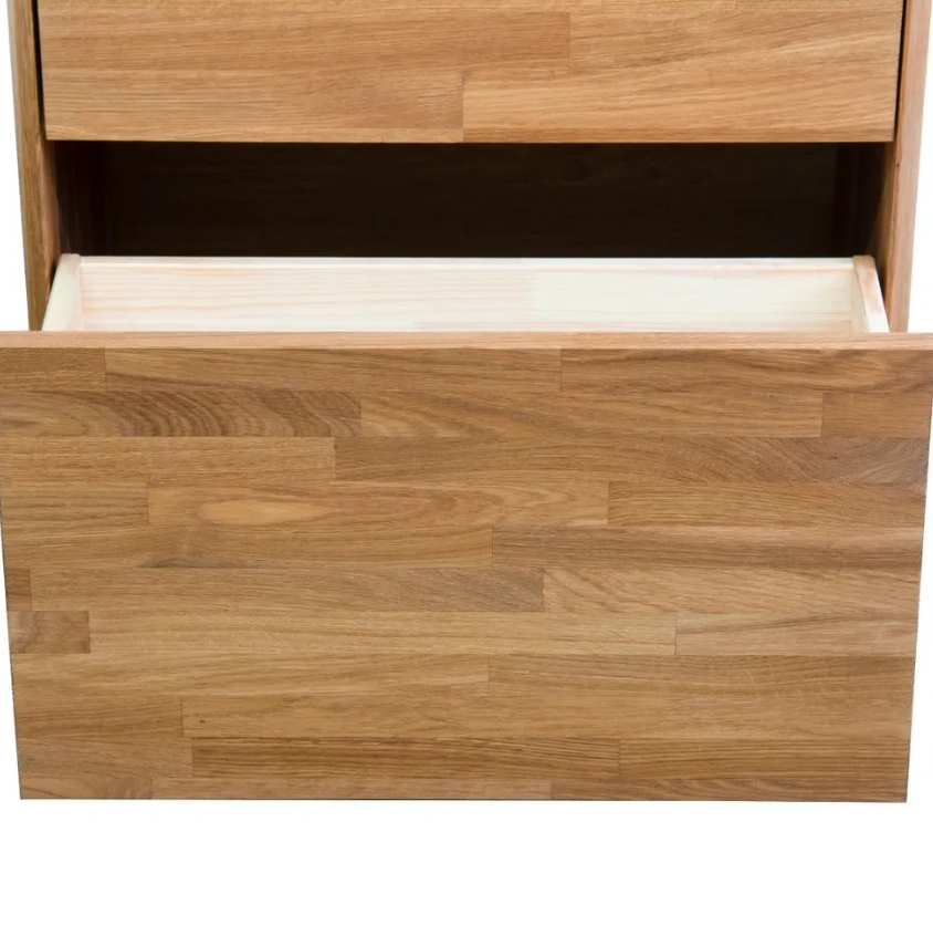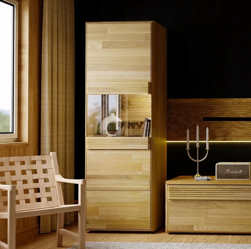 Witryna wykonana jest z litego drewna dębowego z tylną ścianą ze sklejki. W powłoce wtyczki przyjaznej dla środowiska oleju do drewna, który jest wbudowany w strukturę drewna i sprawia, że jest on jaśniejsze i bogatsze.