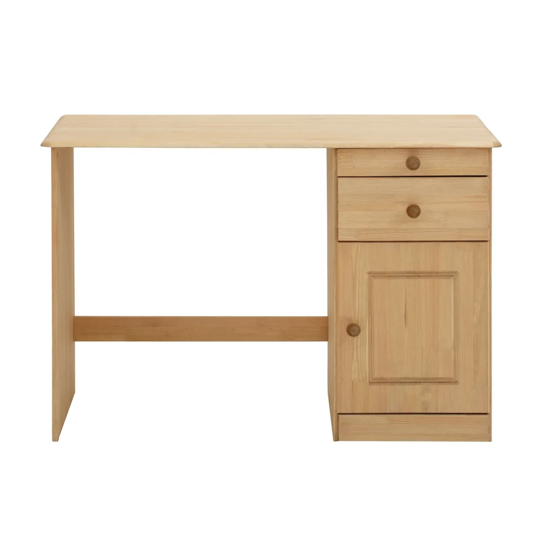 Arbeitstisch 110 x 55 x 74 cm Dieser praktische Holztisch bietet einen nützlichen Platz für alltägliche Aufgaben und verleiht Ihrem Büro und Arbeitsplatz einen Vintage-Charakter. Der Computertisch besteht aus massivem Kiefernholz, das für Haltbarkeit und jahrelange Verwendung sorgt. Runde Holzgriffe werden zum einfachen Öffnen von Türen und Schubladen verwendet. Dieser Schreibtisch bietet Ihnen dank integrierter Schubladen und eines Schranks Stauraum und eignet sich ideal zum Aufbewahren von Büchern, Zeitschriften, Aktenordnern und anderen Notwendigkeiten. Wichtiger Hinweis: Die Farben und die Textur der einzelnen Exemplare können variieren, wodurch jedes Exemplar einzigartig wird. Material: Hartes Kiefernholz mit Klarlack Maße: 110 x 55 x 74 cm (B x T) x Höhe.) Maximale Belastung für die Tischplatte: 100 kg Mit runden Holzgriffen an Türen und Schubladen Warnung: Damit das Produkt nicht umkippt, muss es mit dem mitgelieferten Element an der Wand befestigt werden. Modernes Design Der Tisch erfüllt sowohl eine praktische als auch eine ästhetische Funktion perfekt. Die natürliche Farbe des Tisches passt gut in jedes Interieur und verleiht dem Arbeitsplatz ein Gefühl von Reinheit und Frische. Bequemes Speichersystem Schubladen in verschiedenen Größen eignen sich zum Aufbewahren von kleinen Schreibgeräten. Hinter der Tür ist genügend Platz, um größere Gegenstände, Bücher und Aktenordner zu verstauen. Umweltfreundliche Materialien Der Tisch besteht aus natürlichem Holz-massivem Kiefernholz. Lackiert, um die natürliche Struktur des Holzes zu erhalten. Die zarte, natürliche Farbgebung des Tisches wird Wärme und Komfort am Arbeitsplatz oder am Schulstandort schaffen. Ausrüstung: Tisch-1 Stück Zubehör - 1 Satz anweisungen zum Falten Abmessungen und Gewicht Breite, cm - 110 Tiefe, cm - 55 Höhe, cm - 74 Mindesthöhe, cm - 74 Maximale Höhe, cm - 74 Das Material Das Material der Tischplatte ist hartes Holz Beschichtung-Matt Das Material der Fassade ist Holz, Massivholz Das Material des Rahmens ist Massivholz, Kiefer