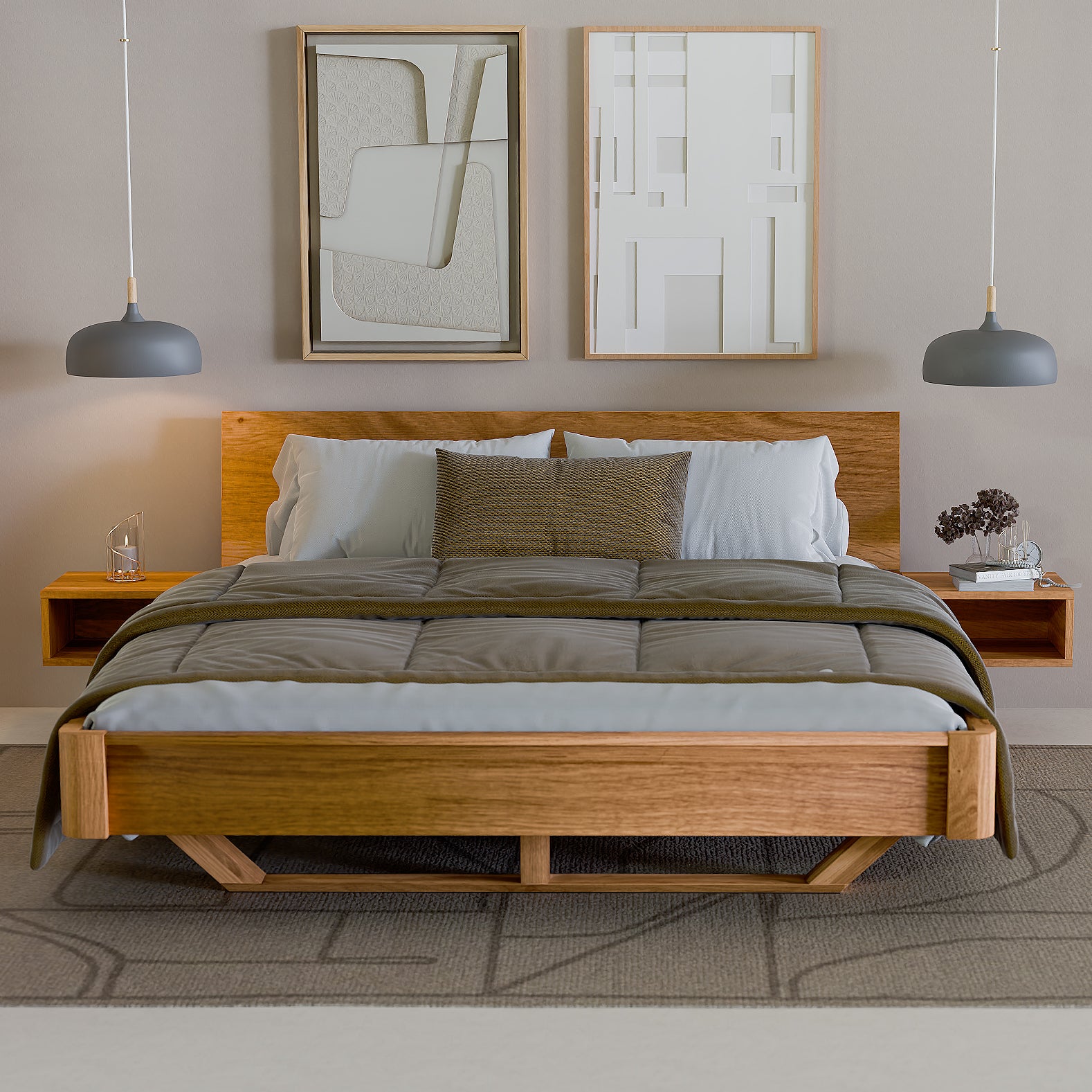 Eichenbett "Exäng" mit eisernen Beinen, 160 cm